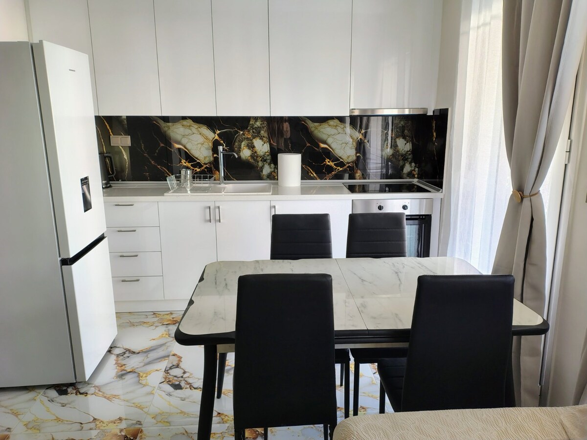 Un appartement artistique, propre, entièrement rénové et entièrement équipé qui offre des moments de bien-être et de détente après une journée intense ! Commodités populaires : - Chaise de massage de pointe - Un emplacement central - Cuisine et salle de bain entièrement équipées - Wifi haut débit - Chauffage et climatisation individuels. - Eau chaude 24 h/24 et eau potable filtrée - Le linge de maison supérieur - Balcon avec une belle vue - Réfrigérateur-congélateur, four, lave-vaisselle, machine à laver, cafetières, 2 téléviseurs intelligents, fer à repasser, sèche-cheveux, pantoufles, lit pour bébé, stationnement facile