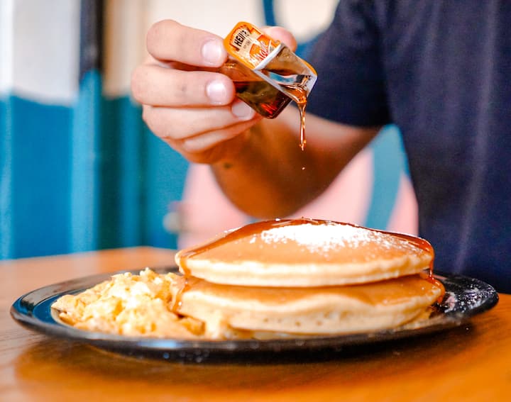 Choisissez entre les gaufres, le pain français ou les crêpes, servis avec du bacon et des œufs brouillés, du café américain, de la crème, du jus de fruits (en fonction de la saison) , du pain grillé, du beurre et de la confiture. tous les ingrédients sont inclus