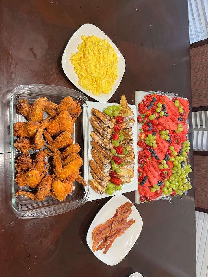 Savourez un brunch préparé par un chef, avec un plateau de fruits frais, deux protéines et deux accompagnements au choix, tous sélectionnés dans mon menu de saison. Complet avec une configuration élégante dans Airbnb, parfait pour des matinées détendues ou des rassemblements spéciaux.