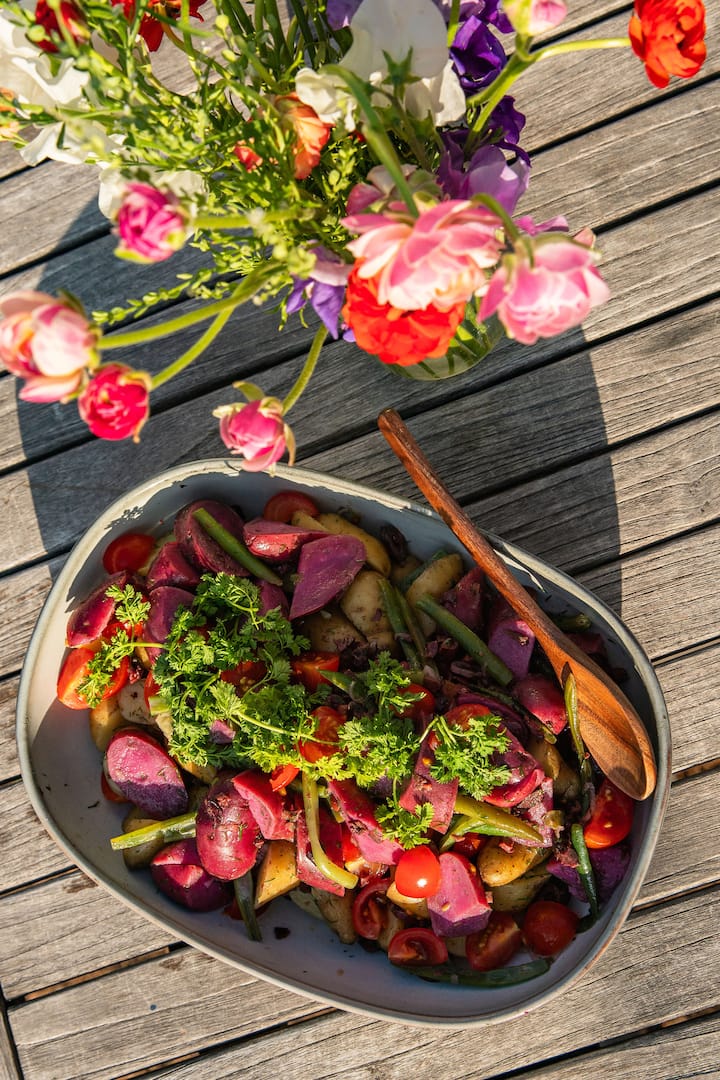salade de maïs et tomates, salsa verde