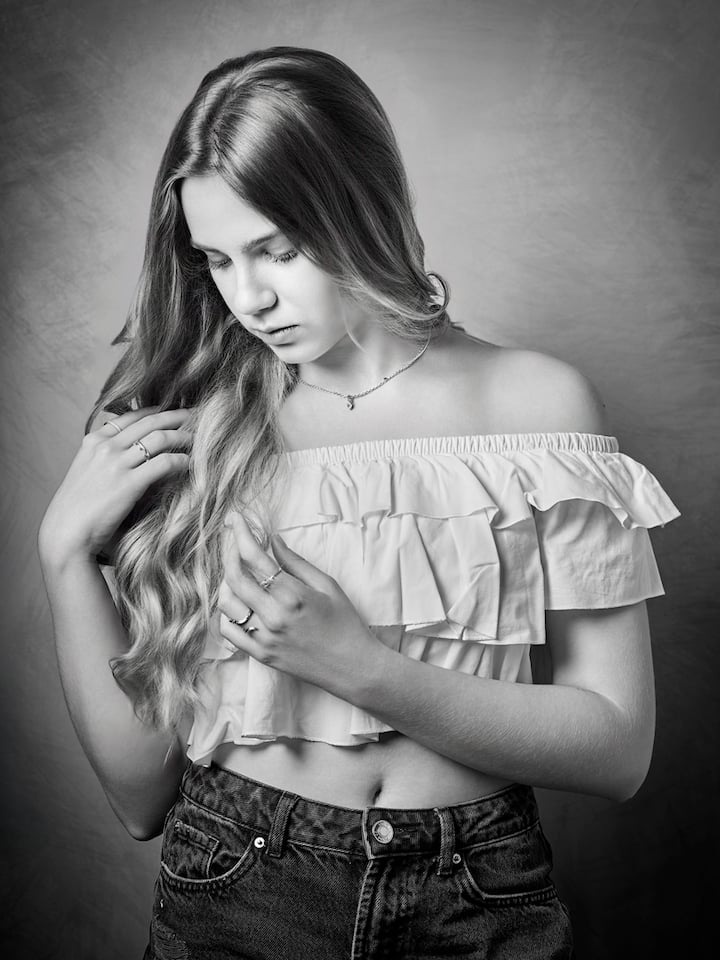 Cette session a lieu dans un ensemble photographique avec éclairage dédié. Il comprend la post-production d'images, une impression au format 30x40 sur papier fine art emballé avec soin et le fichier numérique optimisé pour le web.