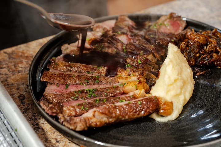 Une option de dîner plus rustique, de style familial.Accompagné de pain et de beurre, et de soupe.ou salade, plat principal et dessert.