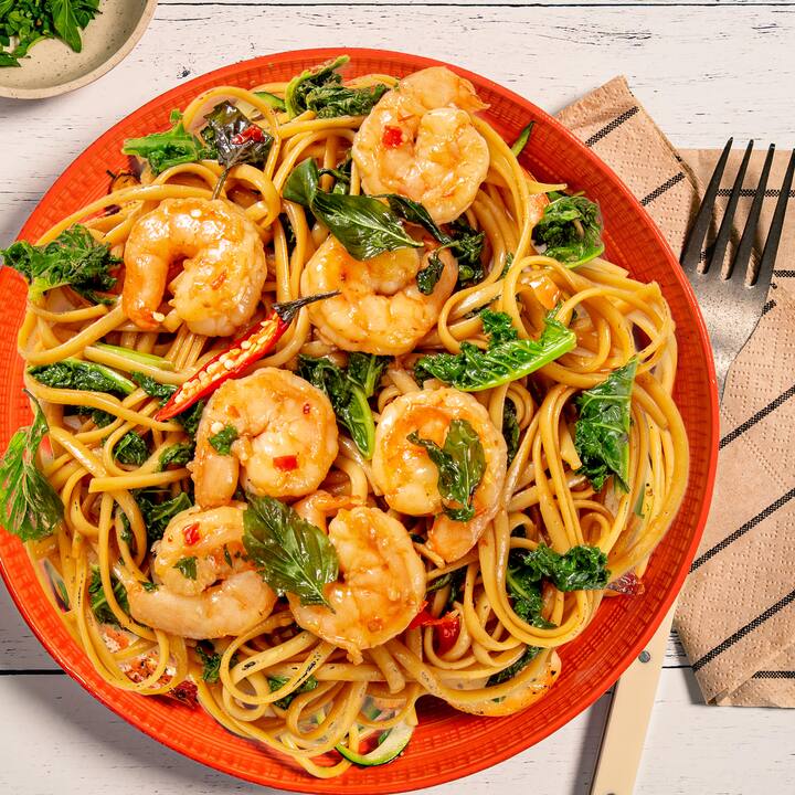 Linguine aux crevettes thaï