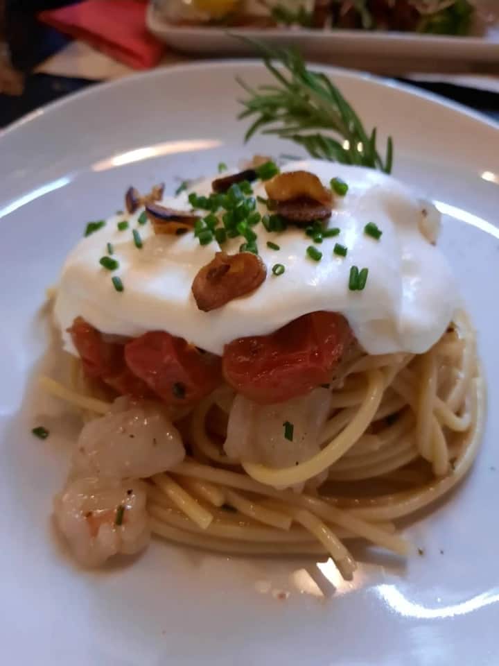 Poisson, viande, pâtes fraîches, riz, fusion culturelle et technique.