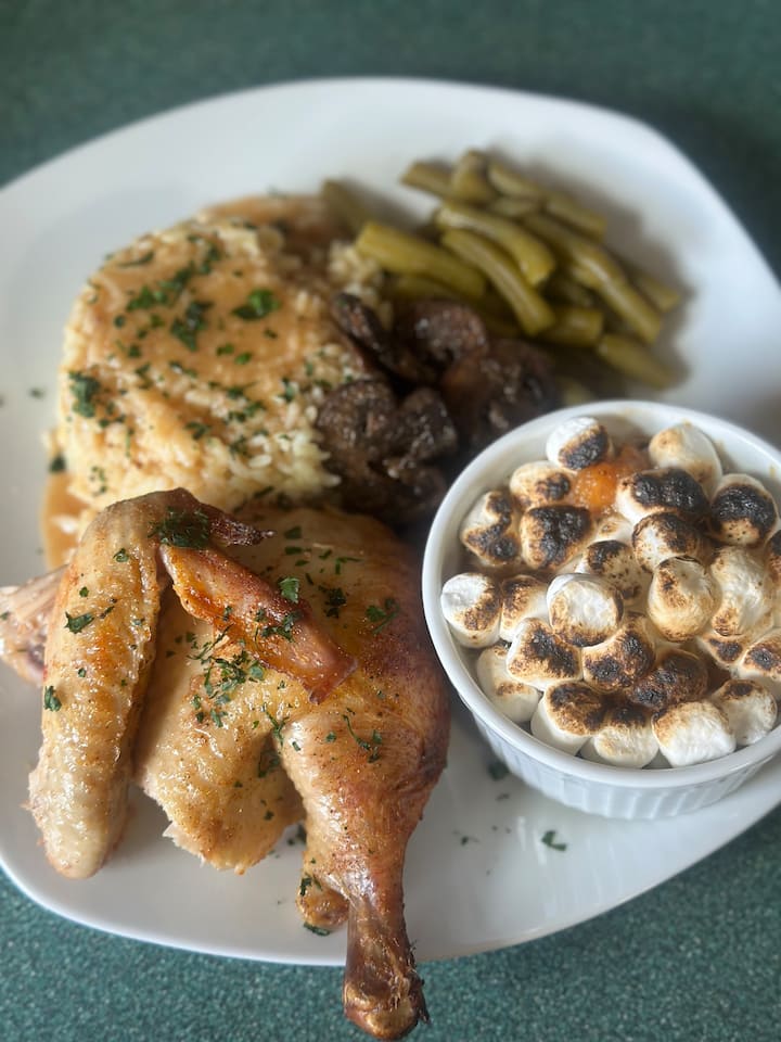Le repas complet comprend une entrée, un plat principal et un dessert.