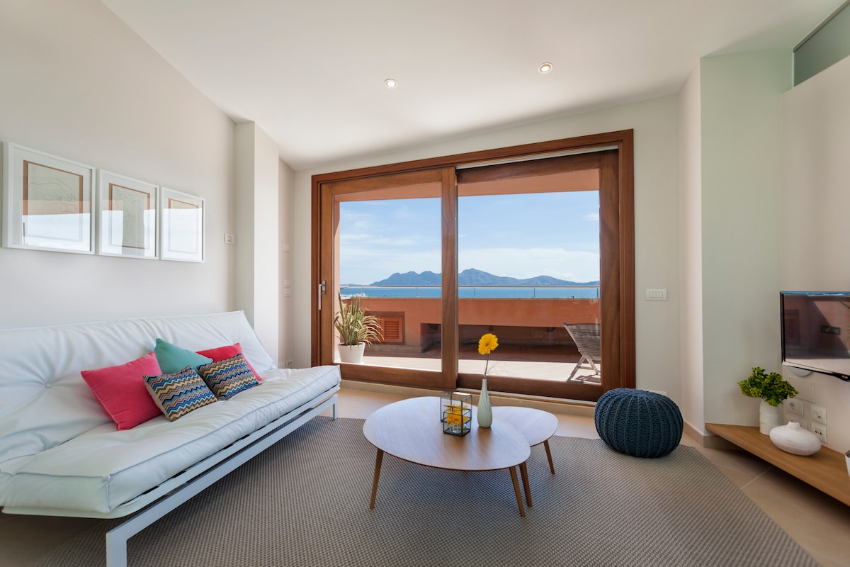 Ca'n Calet est une charmante villa qui bénéficie d'une vue panoramique sur la campagne et la baie de Pollensa depuis la piscine d'eau salée et la terrasse, que ce soit dans la chaleur de la journée ou dans l'air frais de la nuit, entourée de palmiers et d'arbustes, avec une magnifique toile de fond de montagne à l'arrière. Située juste à côté du village d'Alcúdia, à distance de marche des restaurants, bars et plages. À l'intérieur, nous trouvons l'essence de la construction traditionnelle avec des arcs, des poutres...