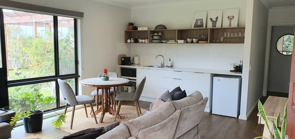 Une retraite luxueuse et spacieuse pour les couples avec des vues panoramiques inégalées. Détendez-vous en toute intimité en sachant que vous êtes la seule villa et les seuls invités dans notre oliveraie. Située au milieu de plus de 1 000 oliviers, la villa surplombe Phillip Island et Westernport Bay et au-delà jusqu'à la péninsule. Avec une vue imprenable depuis chaque fenêtre et une intimité totale, l'effet séduction de la villa est conçu pour impressionner tout couple échappant aux exigences d'un mode de vie trépidant, assurant une escapade sans stress, voire romantique !
