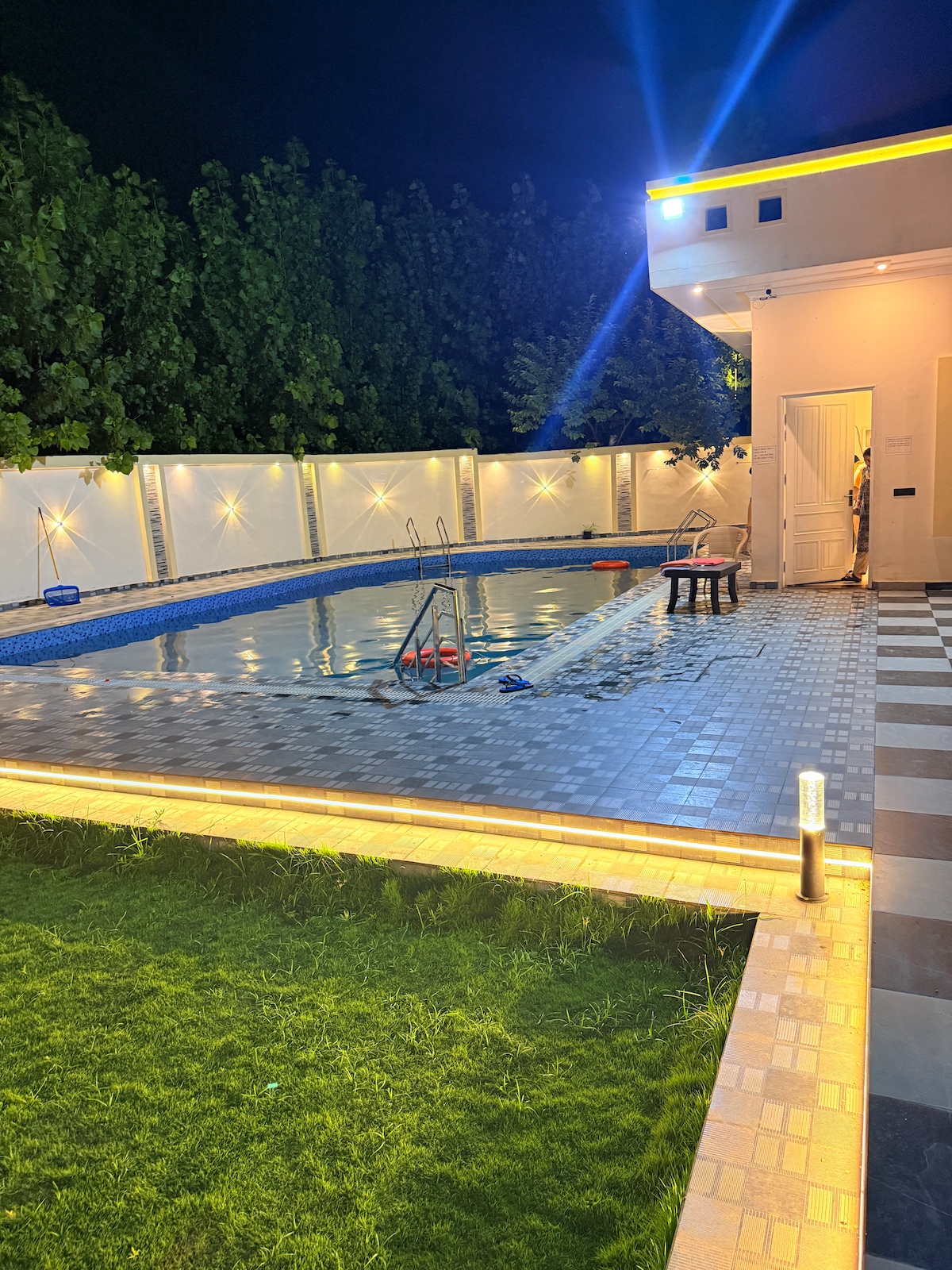 ✨ Stylish 2BHK with Pool, Terrace & BBQ – Perfect for Getaways & Celebrations! ✨ Welcome to your home away from home — a beautifully designed 2-bedroom, 2-bathroom aesthetic stay, perfect for relaxing weekends, extended stays. This thoughtfully crafted space features: 🏡 2 Spacious Bedrooms 🛁 2 Bathrooms 🏊♂️ Refreshing Swimming Pool 🔥 BBQ Area 🌿 Terrace Sitting Area with fairy lights, Optional services: Swimming Pool filling charges: Rs 300 BBQ charges: Rs 250 (2kg coal).