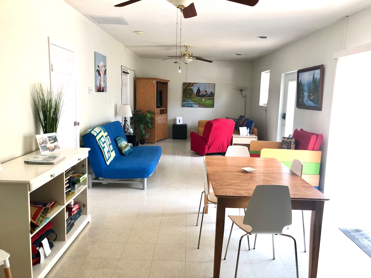 Suite d'efficacité unique entièrement rénovée en novembre 2020. Cette maison est nichée dans un quartier idéal, ce qui vous donne l'impression d'être dans les bois dans une retraite privée au bord d'un ruisseau. Vous avez 2 acres de propriété au bord du ruisseau rien que pour vous. Les améliorations apportées à la maison comprennent de nouveaux appareils électroménagers en acier inoxydable, de beaux comptoirs en granit, de magnifiques carreaux personnalisés dans la salle de bain, une fantastique terrasse couverte donnant sur l'arrière de la propriété. Elle est confortablement meublée et entièrement approvisionnée.