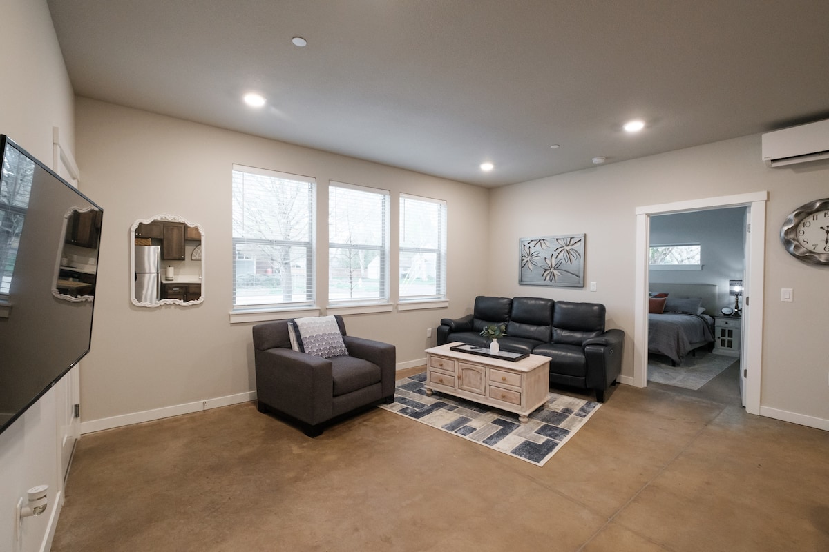 • Design moderne de luxe du milieu du siècle • Matelas en mousse à mémoire de forme haut de gamme • Entièrement approvisionné avec tous les essentiels + extras • Draps en coton de luxe • Parfait pour les familles et les voyageurs d'affaires • Quartier paisible et privé • À quelques minutes des restaurants, des magasins et de l'I-5 • Lave-linge et sèche-linge inclus. Vous êtes seulement : à ○ 10 min du centre-ville de Salem ; à ○ 10 min de l'université Willamette ; à ○ 10 min de l'Oregon State Fair & Exposition Center ; à ○ 30 min du parc d'État de Silver Falls.
