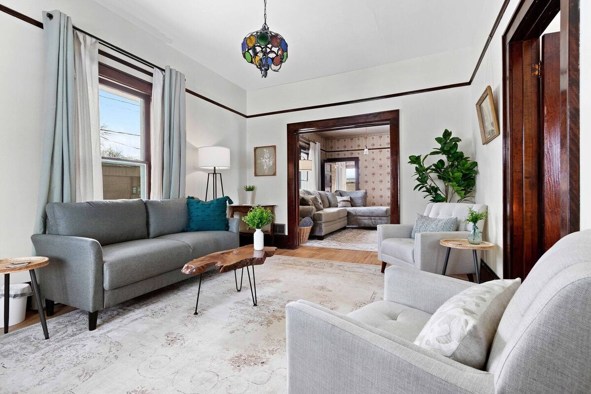 Entrez dans votre havre de paix confortable et ensoleillé, qui vous rappellera votre café de quartier préféré. Conçu avec soin pour allier fonctionnalité, confort et style, cet espace deviendra à coup sûr votre deuxième maison. Située à quelques minutes du centre-ville de Green Bay, des principales autoroutes et des attractions familiales, cette résidence moderne accueille les voyageurs d'affaires et de loisirs. Découvrez un véritable sentiment d'appartenance avec un séjour conçu pour favoriser la connexion, la créativité, la conscience et la communauté !