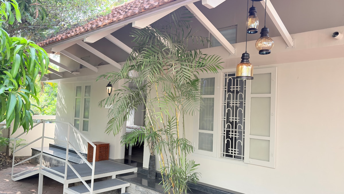Évadez-vous dans un charmant studio de style Kerala 🏡 avec des plafonds en bois chaleureux, un éclairage confortable ✨et une décoration traditionnelle. Détendez-vous près de votre fontaine d'eau privée, balancez-vous dans le jardin 🌿ou profitez de moments paisibles dans l'élégant salon extérieur🪑. Un mélange parfait de confort, de nature et de patrimoine, idéal pour les couples ou les voyageurs en solo À 900 mètres de l’hôpital Gokulam À 50 mètres du supermarché