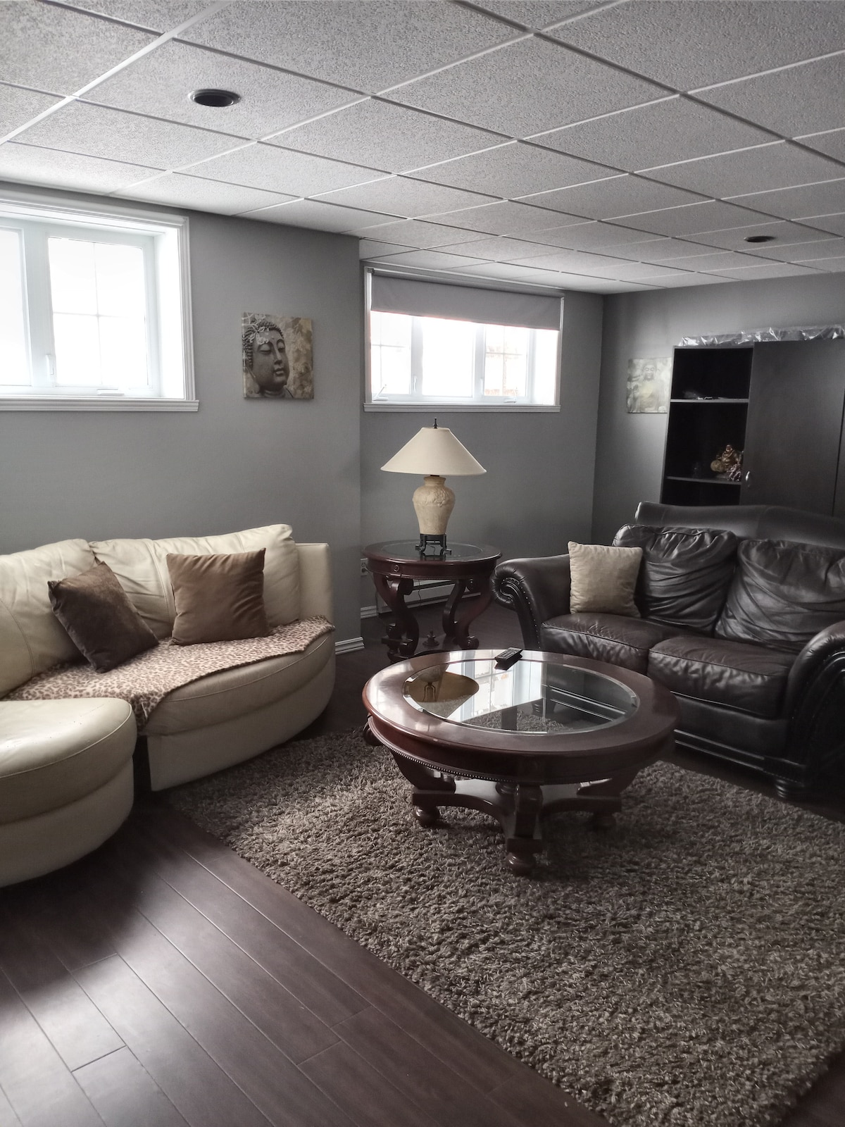 Située dans un rond point près de l'université et de la 410. Grand appartement en demi-sous sol avec grande fenêtre. Aucune pièce partagée, entrée extérieure indépendante et sortie autonome. La chambre 2 est verrouillée, ouverte à partir d'une réservation de 3 personnes (vous pouvez être 2 et réserver pour 3). Nous habitons au-dessus et nous avons deux jeunes garçons. Le grand four ne fonctionne plus, mais il y a un mini-four. Stationnement disponible. *Fêtes interdites