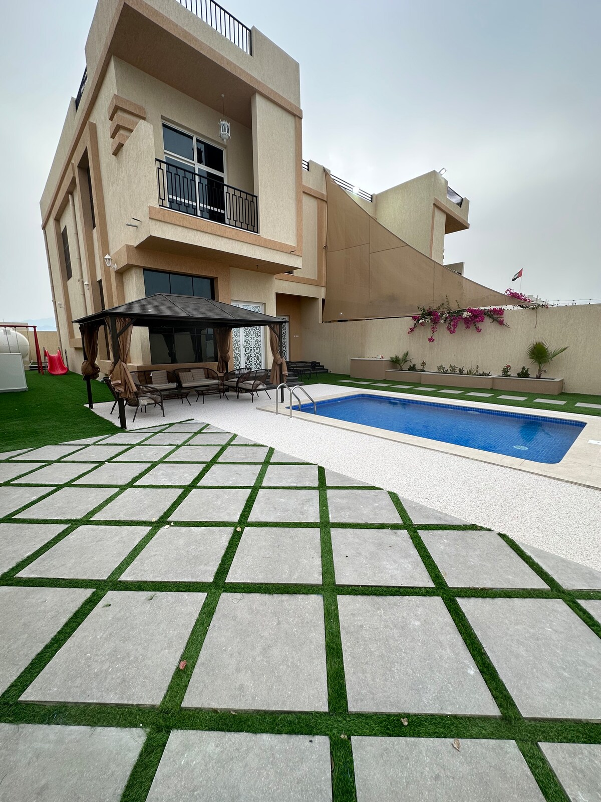 Évadez-vous à Pogino Home, une villa tranquille nichée dans les montagnes majestueuses de Masfout, Ajman. Parfait pour les familles, les couples et ceux qui recherchent la sérénité, Pogino Home offre un changement de rythme rafraîchissant avec des vues à couper le souffle. Cette retraite privée dispose de cinq chambres, sept salles de bains, deux salons, une cuisine complète et deux balcons. Profitez de la vie en plein air avec une piscine et un barbecue, et vivez des moments inoubliables dans un cadre pittoresque. Découvrez votre chez-vous loin de chez vous.