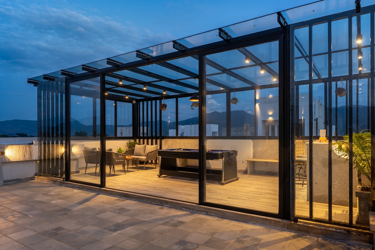 Bienvenue dans une retraite unique dans le quartier le plus branché de Pune. Notre penthouse de 2 chambres offre le mélange parfait de détente et d'amusement. Détendez-vous dans le jacuzzi privé, défiez vos amis à un jeu sur la table de billard ou détendez-vous simplement sur la terrasse avec vue sur la rivière. Situé au cœur de Koregaon Park, vous êtes à quelques pas des meilleurs cafés, restaurants et boutiques. Échappez à la ville, sans jamais la quitter.