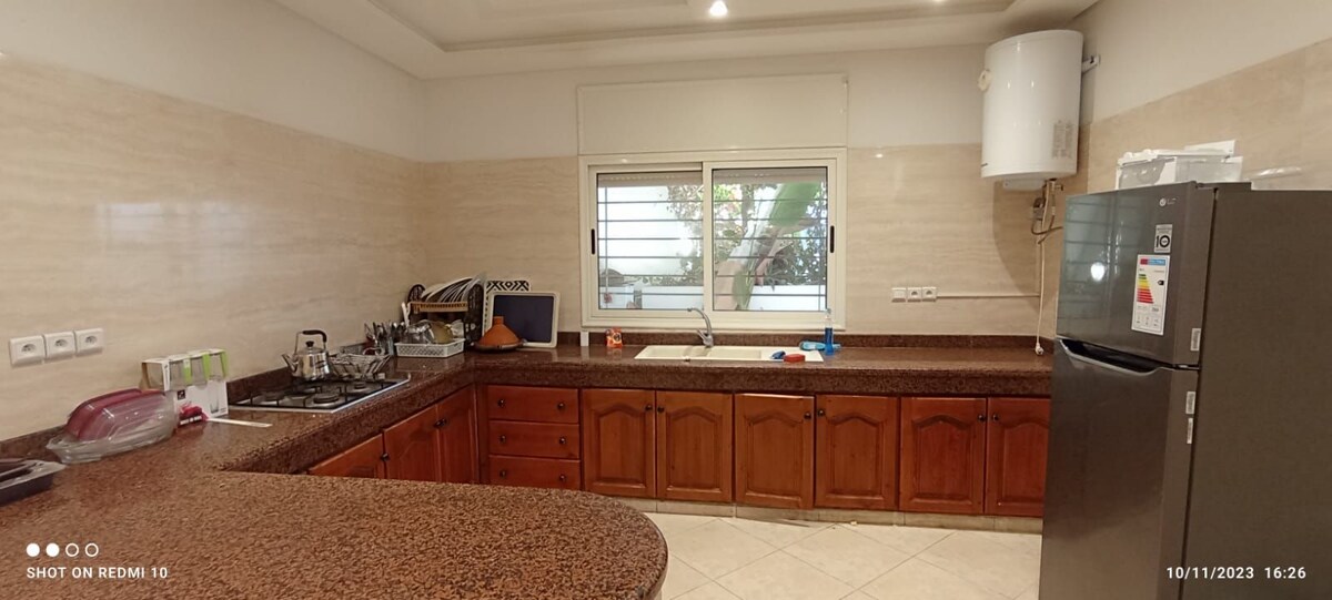 Charmante Maison de Vacances à la Campagne d'El Jadida Bienvenue dans notre havre de paix en campagne d'El Jadida, au Maroc. Idéal pour une évasion urbaine, notre maison offre : Une chambre confortable avec salle de bain privée. Une cuisine équipée. Un séjour accueillant. À l'extérieur, profitez de notre jardin paisible : Piscine privée pour se détendre. Petit terrain de football pour du sport en famille. Venez vivre une expérience inoubliable, entouré par la nature et le chant des oiseaux.