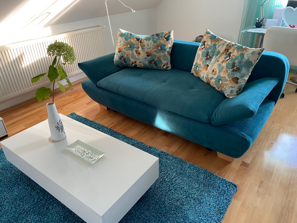 Un appartement joliment meublé d'environ 70 mètres carrés dans le centre de Mainburg est loué. Est à environ 40 km de l'aéroport. Transfert aéroport possible. L'appartement est bien équipé(wifi, réfrigérateur, four, cuisinière, matériel de nettoyage, SMART TV, draps, serviettes, shampoing) et est adapté pour 4 personnes.
