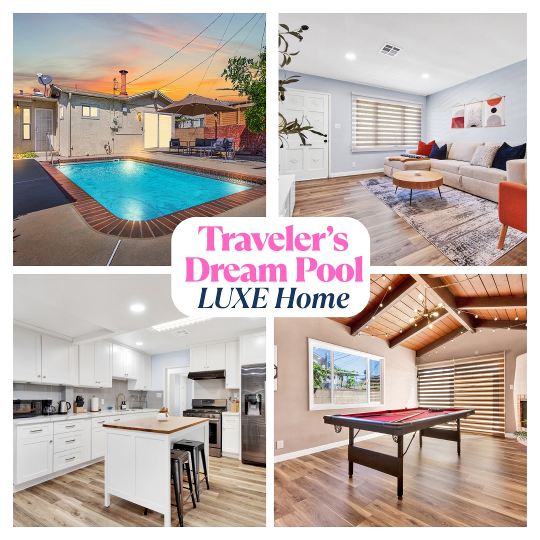 Ma maison de 3 chambres et deux salles de bain peut accueillir confortablement 8 personnes, et avec une salle à manger traditionnelle et une cuisine ENTIÈREMENT équipée, créer des souvenirs avec votre famille et vos amis est sans effort. Profitez du magnifique soleil californien et profitez de la cour arrière entièrement fermée et de la cour avant entièrement clôturée avec PISCINE (la piscine peut être chauffée pour un supplément de 75,00 $ par jour), d'un coin repas extérieur et de guirlandes lumineuses pour une ambiance parfaite. Prenez un verre de vin ou de bière fraîche dans mon salon éclectique.