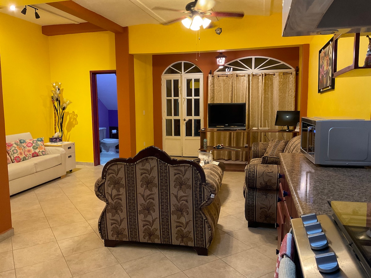 Situé à 3 minutes (1,5 miles/2 km) de l'aéroport international de Guanajuato (BJX) et à 5 minutes de Puerto Interior (Silao, Gto) Seulement 11 miles (19 km) à la ville de Leon et 18 miles (30 km) à la ville de Guanajuato, centre historique. Transport et repas disponibles (en supplément). Propriété Située sur les rues principales, elle est facile à localiser et un marché d'angle se trouve à proximité de la propriété. Autres appartements disponibles en cas de voyage avec un groupe plus important.
