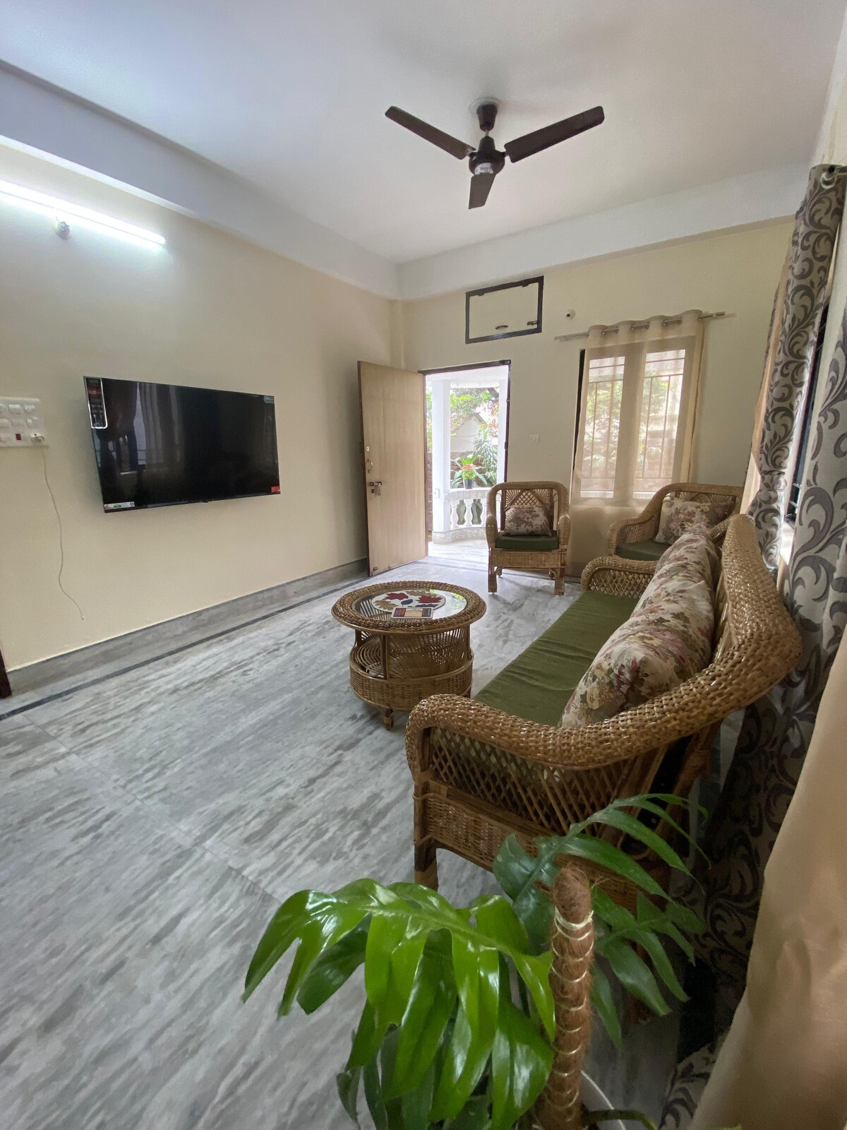 Welcome to our cozy and thoughtfully designed 3-room apartment, perfect for families, groups, or remote workers! Each bedroom features a comfortable queen bed, ceiling fan, wardrobe with locker, and its own unique vibe Room 1: Entertainment room with TV Room 2: The only room with AC workspace & story books Room 3: Recreational space to relax or stretch Enjoy a functional kitchen, high-speed WiFi, a common area with both Indian & western toilets, separate bathroom with geyser, and free parking!