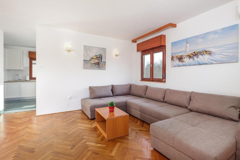 La maison est située à 400 mètres de la mer et de la plage de sable, restaurant 200m, commerces à 100m. Un parking est disponible à côté de la maison. L'appartement est situé au premier étage. Taille de l'appartement de 45 m2. L'appartement dispose de 2 chambres, d'une salle de bain, d'une cuisine et d'un salon avec un canapé pour une personne supplémentaire. Chaque chambre dispose d'un lit double pour 2 personnes. La salle de bain est avec une douche. La cuisine est entièrement équipée et comprend un réfrigérateur, un congélateur et un four à micro-ondes. L'appartement dispose également de la climatisation, d'une connexion Wi-Fi gratuite et d'une télévision par satellite.