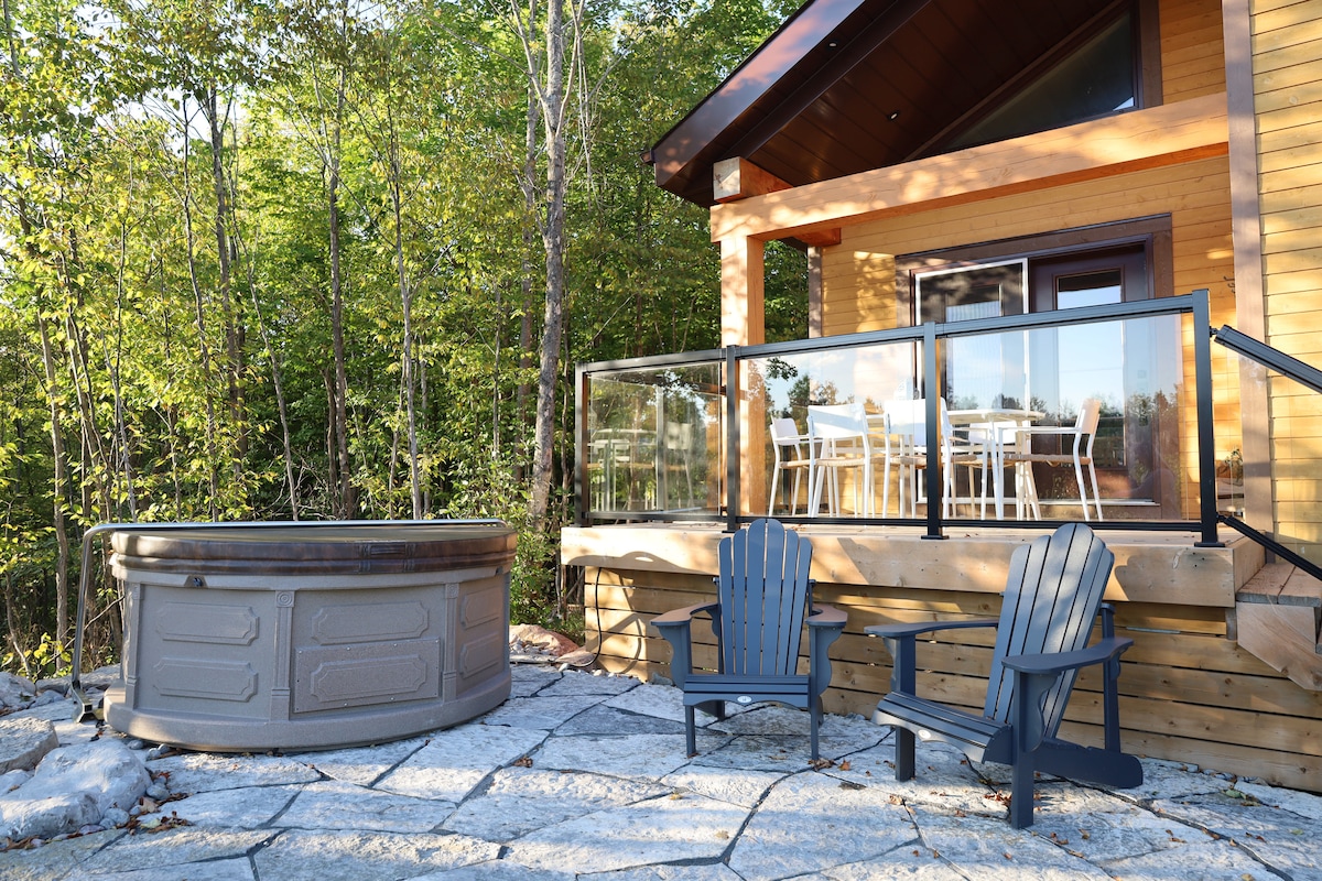 Évadez-vous à l'Aux Box, une cabane de luxe nichée dans les bois de Muskoka avec une vue sereine sur la rivière. Conçu pour le confort et le style, il dispose d'un chauffage au sol, d'armoires sur mesure et d'équipements haut de gamme. Entrez dans votre spa nordique privé avec sauna, bain à remous et plongeon à froid pour une détente ultime. Profitez d'une intimité totale tout en étant à moins de 10 minutes des boutiques, des restaurants et du charme du centre-ville de Huntsville. Un mélange parfait de nature et de luxe vous attend.