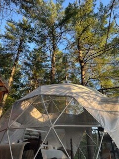 Welcome to our private campsite in Utopia, ON. Our family’s glamping dome is your chance to experience a unique getaway surrounded by the sights & sounds of nature. Amenities include camping essentials & some glamping perks: king size bed, bbq, fireplace, Indoor incineration toilet, soap & water, outdoor shower (summer only), kettle, cooking utensils. Nearby is Purple Hill Lavender Farms, Drysdale's Tree Farm, Tiffin Conservation Area, Nottawasaga & golf courses. Wasaga Beach is 30 min away.