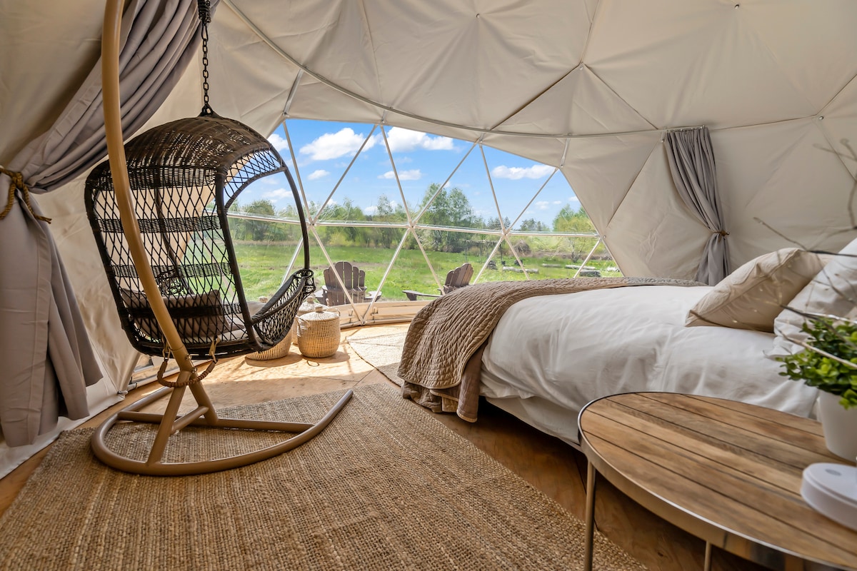 Venez vous retirer dans la nature au Riverview Glamping Dome… une escapade 4 saisons située sur la ferme Rustic Roots Farm and Eco-retreat à 1 heure au nord de Toronto. Que vous soyez à la recherche d'une escapade romantique ou que vous souhaitiez vous déconnecter de l'agitation de la vie quotidienne, ce dôme géodésique est fait pour vous ! Situé sur 64 acres tentaculaires, venez explorer les sentiers de randonnée, aller à la pêche, vous détendre dans le jacuzzi et observer les étoiles au coin du feu.