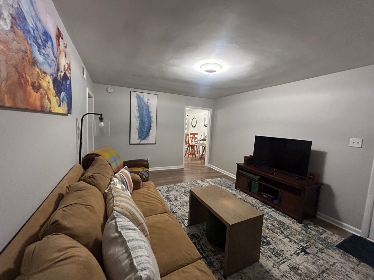 Escape to historic Franklin's charm! 🌟 Modern main-level hideaway, minutes to everything! Perfect location for romantic getaways, casual stays, or a comfy cross-country layover. Enjoy this peaceful well-equipped home with quick I-65 access (2 min). Explore downtown's Southern eats & gems like The Mint Casino & Gaming (3 min), Bledsoe Creek, and Lost River Cave. Relax on the deck amidst birdsong. Ideal for Nashville (30 mins) or Bowling Green (20 mins) escapes!
