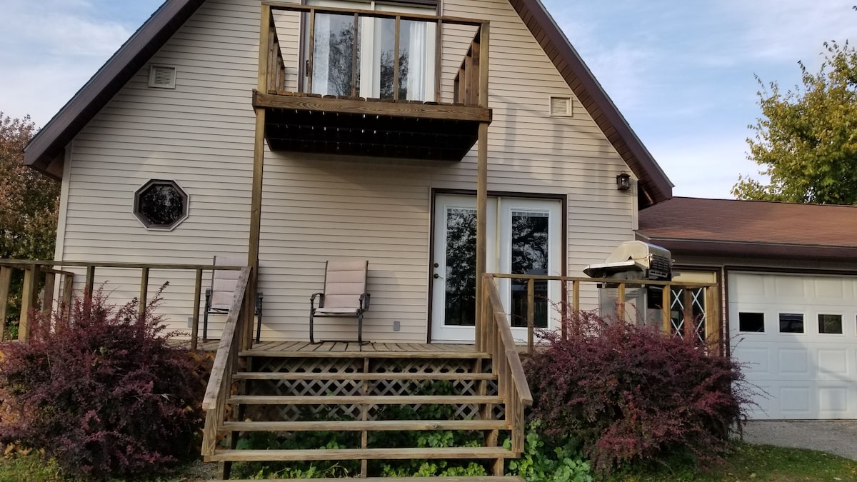 Détendez-vous en famille dans ce chalet paisible situé directement sur les eaux du lac Big Stone. Accédez aux sentiers pédestres du parc d'État de Hartford directement depuis le chalet ! À distance de marche de 2 restaurants/bars. Profitez de toutes les activités de la vie lacustre en été avec un foyer, un patio et des sièges au bord de l'eau et un quai pour votre bateau et votre jet ski. Profitez d'un accès direct au lac pour la pêche sur glace en hiver ! Internet haut débit par fibre optique parfait pour le télétravail.