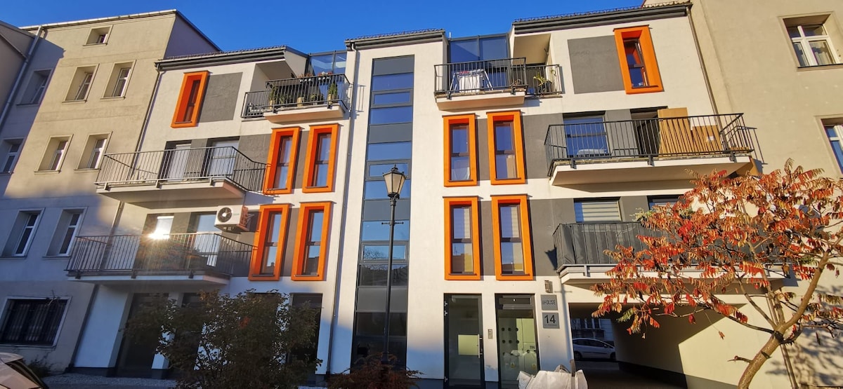 Un appartement très bien situé en plein centre ville. Nouvelle construction. Entièrement équipé (réfrigérateur, machine à laver, plaque à induction, micro-ondes, four, TV 55", WiFi, kitchenette avec tous les ustensiles de cuisine et de cuisine). Une aire de jeux dans la cour. Parking avec un grand nombre de places de parking, payable de 9h à 17h du lundi au vendredi. En dehors de ces heures et gratuit le week-end. Au plaisir de vous accueillir. Nous offrons des réductions attrayantes pour les séjours longue durée.