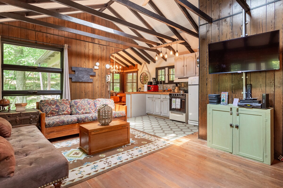 Observez des cerfs tous les jours lors de cette escapade confortable pour les amoureux de la nature. Ce chalet de Smallwood a une ambiance rétro colorée amusante et peut accueillir jusqu'à 4 personnes. Les animaux de compagnie sont les bienvenus. Situé à quelques minutes à pied du lac de montagne, à 10 minutes du Bethel Woods Center for the Arts, à 20 minutes de Narrowsburg, Barryville, Livingston Manor et de nombreuses autres villes charmantes. Grande cour arrière clôturée avec vue sur les bois et foyer extérieur, grande terrasse avec barbecue, cuisine entièrement équipée. Cheminée intérieure confortable, télévision intelligente avec Netflix, espace de travail, Wi-Fi rapide.