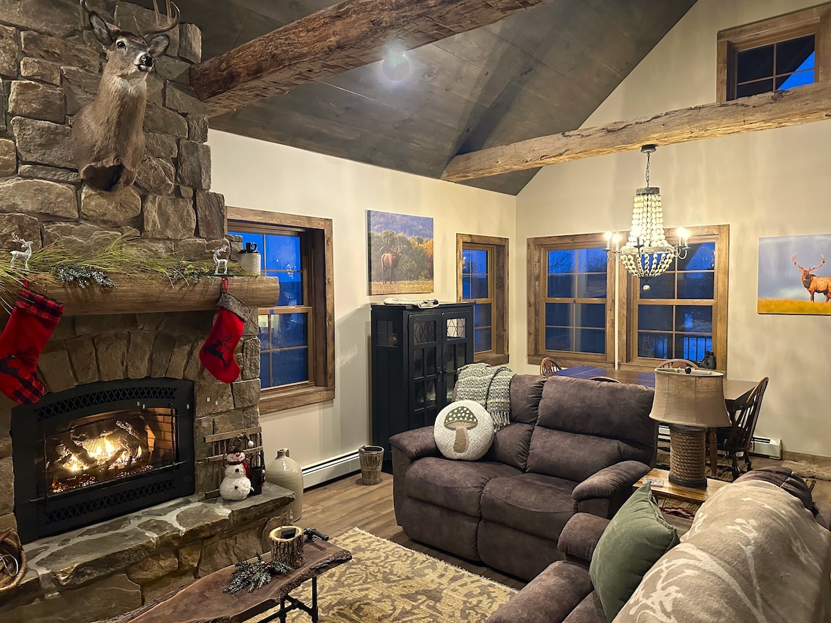 A peaceful spot to relax and enjoy the outdoors with family or friends. Features a spacious porch, fire pit (firewood included), gas and charcoal grills, horseshoe pit, cornhole, and a full kitchen setup. Great for a weekend getaway, hunting or fishing trip. Just a short walk to Game Lands #61 and a short drive to Kinzua, Cherry Springs, and other outdoor attractions.