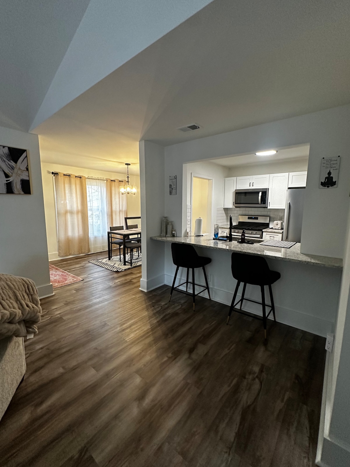 Un appartement au sous-sol privé de 1 lit/1 salle de bain magnifiquement rénové et spacieux avec une entrée privée et séparée ! L'appartement comprend des appareils de cuisine en acier inoxydable, le wifi, un espace de travail dédié, deux téléviseurs coupe-feu à écran plat, un lave-linge et un sèche-linge, et une cheminée électrique. Situé dans un quartier résidentielle tranquille, mais à seulement 5 miles de la place historique de Marietta et à 5 miles du stade Braves. Profitez du calme et de la tranquillité tout en étant proche de l'excitation du métro Atlanta !