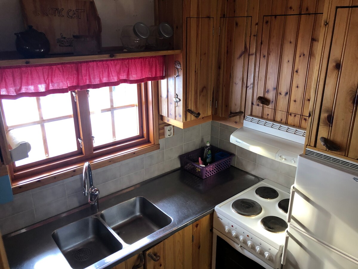 Lodge Nammatj, cottage avec loft, pour 4 personnes. Salon avec coin repas et cuisinière en fonte, petite cuisine avec équipement de cuisine pour 4 personnes. Il y a de l'eau chaude et froide, des toilettes et une douche à Nammatj. Balcon avec sièges. Espace barbecue. Il y a du bois pour un feu dans le chalet, si vous voulez brûler plus, si vous apportez votre propre bois. Remarque : le linge de lit et les serviettes ne sont pas inclus !