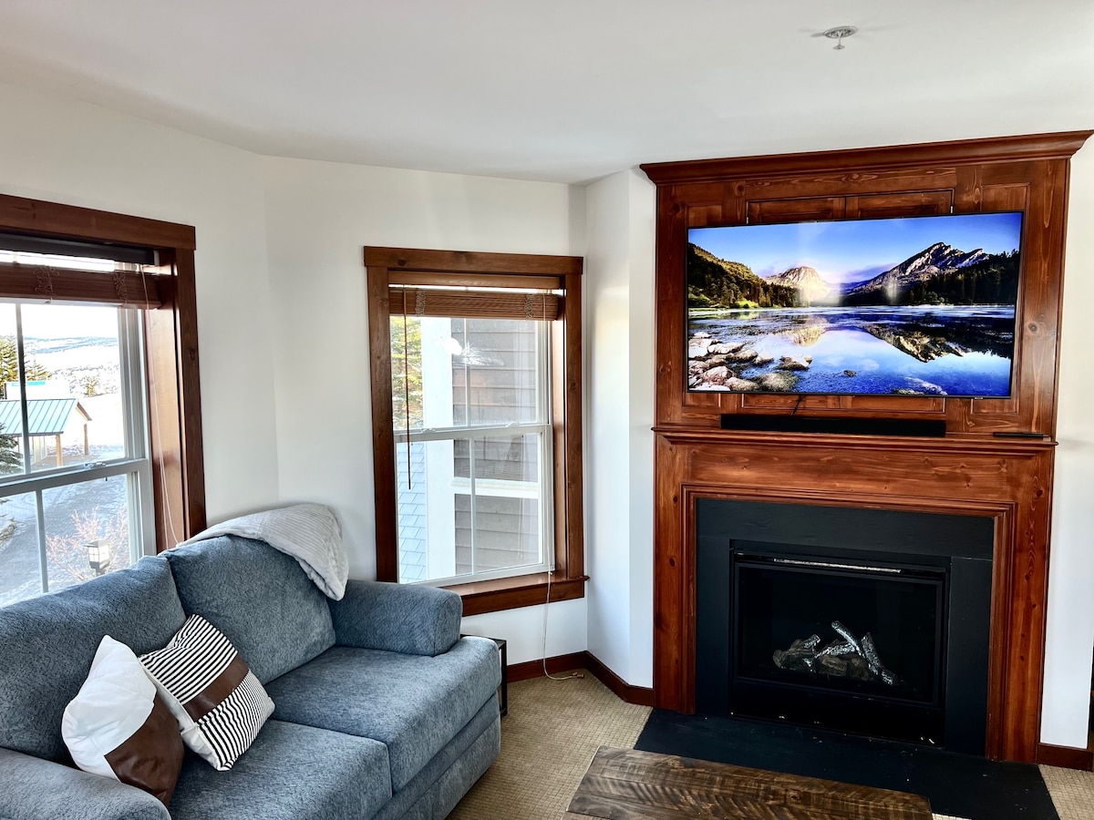 SKI-IN/SKI-OUT* 1 CHAMBRE fraîchement rénovée avec cuisine complète, 2 unités de climatisation (chambre/salle familiale)**, foyer électrique et belle vue sur les pistes. TOP OF THE WORLD est situé à côté du Soaring Eagle Lodge, avec accès SKIS AUX PIEDS* à la remontée mécanique à grande vitesse Soaring Eagle Express. Le bâtiment dispose d'un restaurant à service complet, d'un magasin de ski et de locations d'équipement sur place (hiver seulement). Arrivée autonome ; navette gratuite ; parking gratuit ; sentiers de randonnée et pistes cyclables juste devant la porte. *si les conditions le permettent **Été seulement.