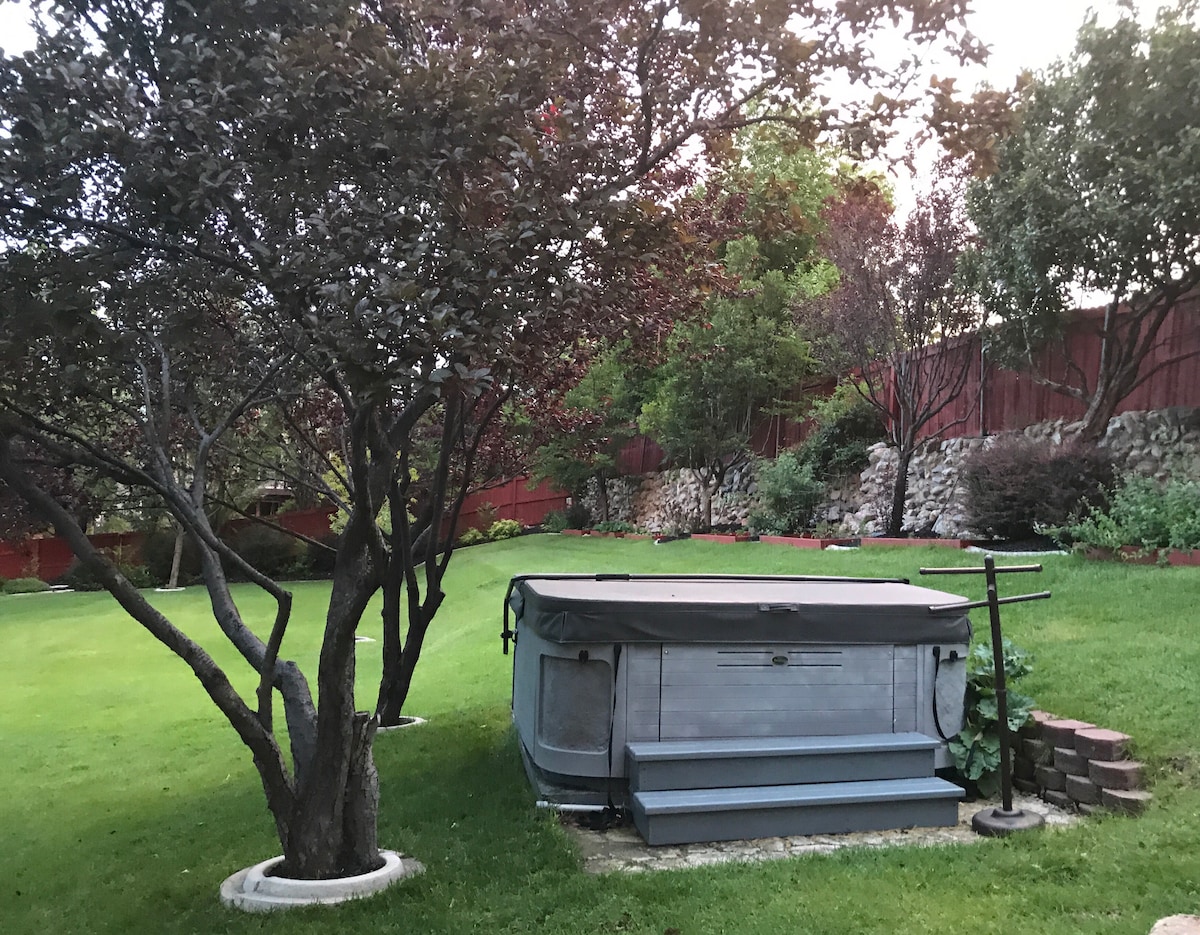 Respirez l'air de la montagne en faisant du ski, du snowboard, de la randonnée et du vélo, puis détendez-vous près de notre ruisseau qui coule toute l'année dans le Little Cottonwood Canyon, à seulement 7 miles de Snowbird et d'Alta. Cette maison est nichée dans un cul-de-sac calme et isolé avec une cour privée. Appartement au sous-sol (plus de 1600 pieds carrés) avec une entrée séparée, une grande pièce familiale avec une télévision à écran plat HD de 55 po, 2 chambres, une salle de bain complète avec baignoire/douche et une kitchenette. À l'extérieur, vous vous délecterez du spa artésien.