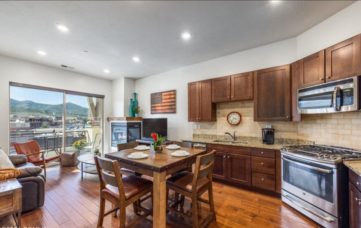 Bienvenue dans cette superbe maison de ville ! - 2 chambres et 2 salles de bains avec 3 lits au total pouvant accueillir jusqu'à 6 personnes. - Salon confortable avec foyer au gaz, télévision connectée et patio privé. - Cuisine entièrement équipée avec appareils en acier inoxydable et comptoirs en granit. - Jacuzzi privé pour se détendre. - Situé à proximité des boutiques Redstone, des restaurants et des sentiers de la réserve Swaner Preserve. - Accès facile à Park City Mountain Resort et Deer Valley Resort.
