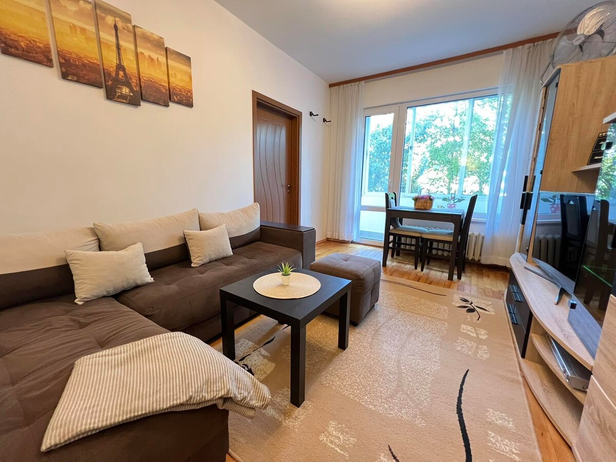 Notre appartement est situé dans un immeuble, juste à côté du parc municipal Geo Milev. Idéalement situé entre l'aéroport et le centre-ville, c'est un endroit très calme et également à proximité des liaisons de bus, adapté aux célibataires, aux couples et aux voyageurs d'affaires. Le design et le décor confortables vous feront vous sentir comme chez vous et vous aideront à vous détendre après une journée bien remplie. Si vous avez envie de faire du shopping, gardez à l'esprit que le centre commercial « Serdika » est accessible à pied. Réductions pour les séjours longue durée