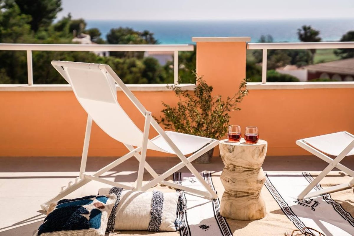 Bienvenue à F4 - Suites Bella Vistas, un luxueux appartement de deux étages avec une vue imprenable sur Son Bou. Profitez d'une chambre principale avec une salle de bain et une terrasse privée, de deux chambres à lits jumeaux et d'un coin salon moderne avec une télévision connectée 4K de 55 pouces. La cuisine entièrement équipée comprend un lave-vaisselle, une friteuse à air et plus encore. Équipements : Wi-Fi gratuit, climatisation, barbecue au gaz. Pack de bienvenue gratuit inclus. Location de voiture recommandée en raison de la colline escarpée et pour explorer Minorque.