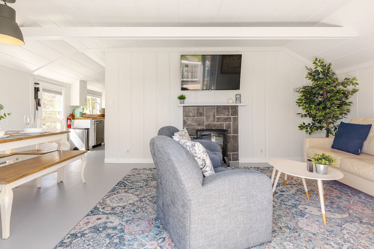 Découvrez notre confortable retraite de deux chambres, à quelques minutes du centre-ville. Ce charmant espace dispose d'ustensiles de cuisine de qualité supérieure, d'un bidet et d'un porte-serviettes chauffant. Profitez d'une vie intérieure-extérieure transparente avec des portes qui s'ouvrent sur une terrasse, avec un barbecue et un coin repas extérieur. Situé en face de sentiers de randonnée pittoresques et à seulement quatre pâtés de maisons de la rivière Russian, c'est l'endroit idéal pour les amoureux de la nature. Malgré sa petite taille, chaque détail est soigneusement conçu pour votre confort. Réservez un séjour dès aujourd'hui