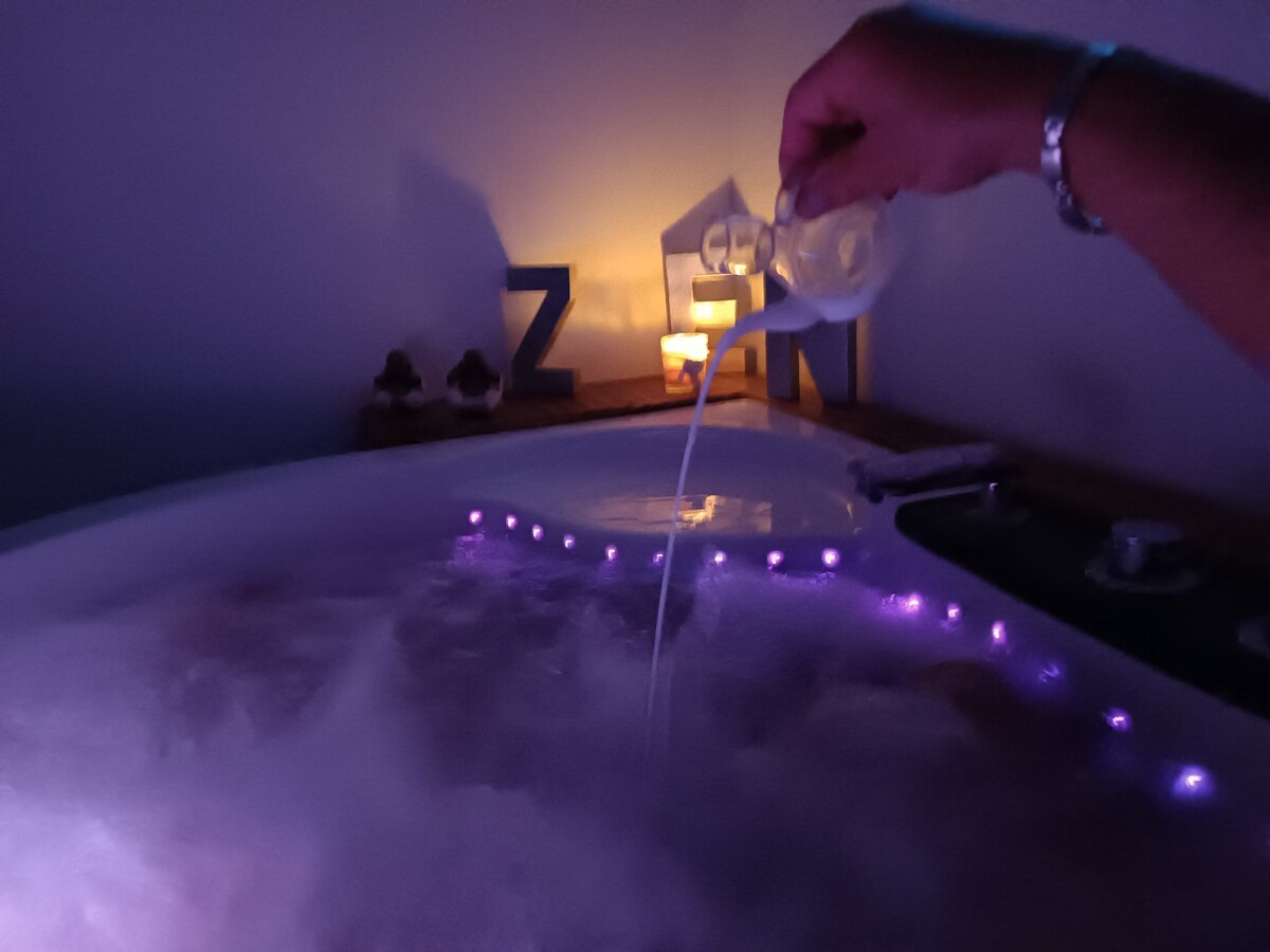 Dans les Albères à Sorede, Une vraie parenthèse de bien être et de relaxation dans ce bel écrin de romance... son espace balnéo, vous fera vivre un véritable lâcher prise, son lit king size de bois flotté et voilage scintillant de mille lucioles et si vous le souhaitez profiter d un massage pour venir parfaire cette expérience inoubliable en vallée heureuse... il est temps de prendre soin de vous ... dans un cadre calme de verdure qui domine les Albères. à 20 min des plages . 25 de Collioure.