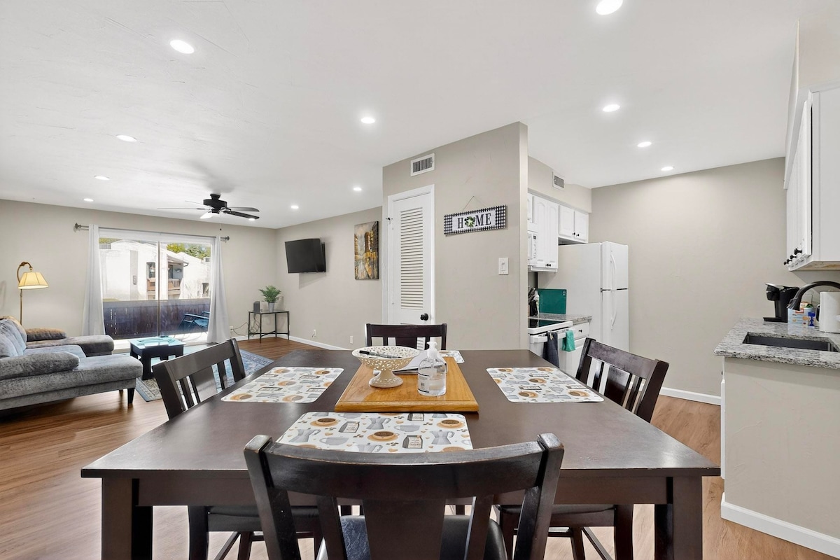 Discover the perfect blend of sophistication and functionality in this modern townhome. With sleek lines and a minimalist design, every detail is thoughtfully curated for a seamless experience. This urban haven offers a tranquil escape conveniently located between historic Oldtown and DT Albuquerque. Enjoy curated local art accompanied by eclectic décor. Ideal for those seeking to explore the vibrant city or retreat to a more intimate hideaway. We got you covered, we stock all the essentials!