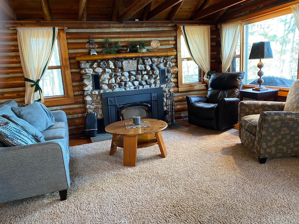 Beau chalet au bord du lac « up-north » à quelques pas du lac et entouré de pins. Vue imprenable ! Joliment meublé et décoré. Plan d'étage ouvert avec belle cuisine, salon et coin repas, plus véranda toutes saisons avec vue magnifique sur le lac. 3 chambres et 1,5 salle de bain. Lave-linge/sèche-linge inclus. Location à la semaine (du dimanche au dimanche) requise de la mi-juin à la fête du Travail. Location de deux jours minimum requise le reste de l'année.