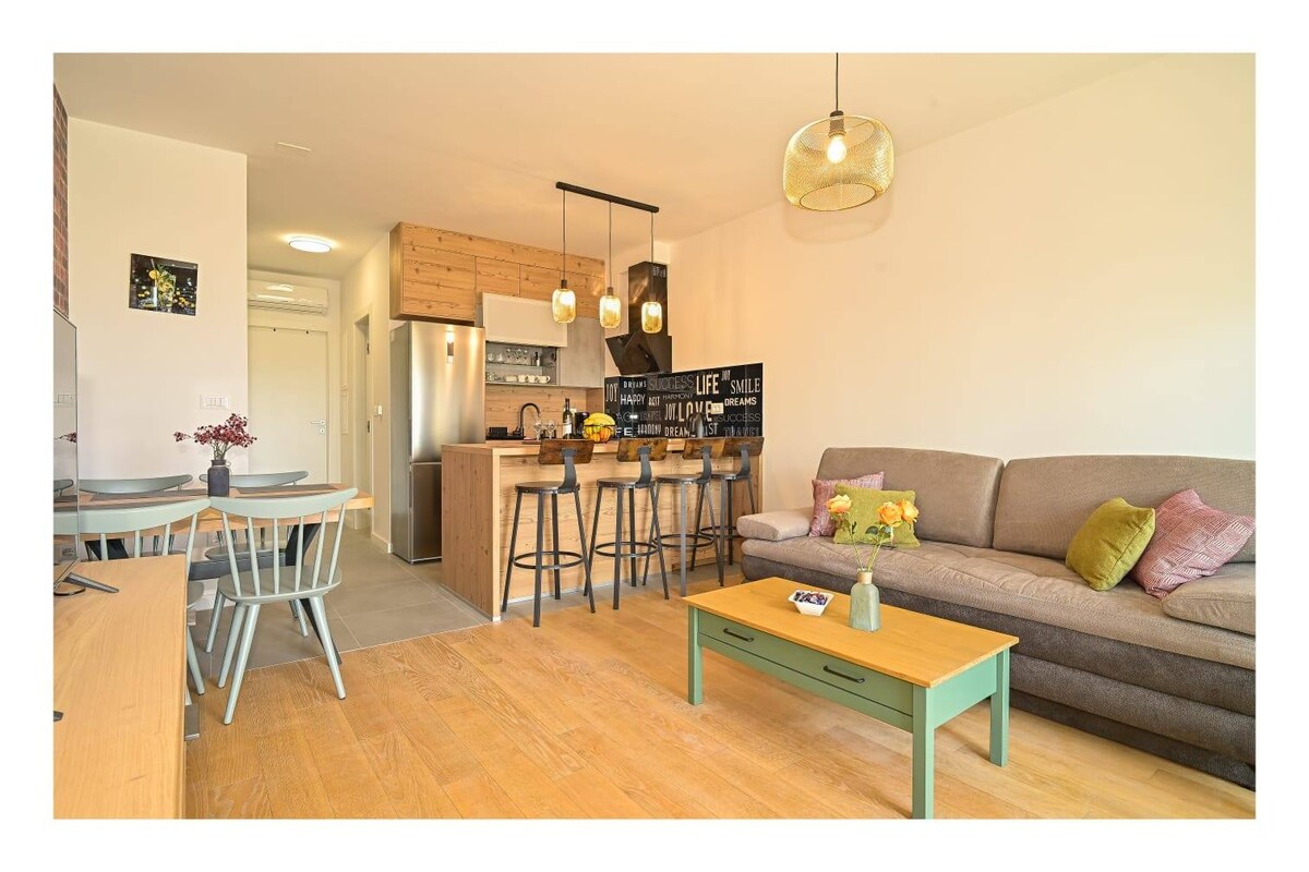À 🏖️ 3 min à pied de la plage • 🌅 Balcon avec vue sur la mer • 🚗 2 places de stationnement gratuites Appartement de luxe de deux chambres à seulement 150 mètres de la plage, situé dans le quartier populaire de Znjan près du centre de Split. Parfait pour les familles, les couples ou les amis, cet espace moderne offre une vue imprenable, un aménagement spacieux et un accès facile aux transports en commun, aux restaurants, aux magasins et à une promenade en bord de mer idéale pour les promenades ou le vélo. Profitez des couchers de soleil, du confort et de la proximité des principales attractions de Split. 🌇