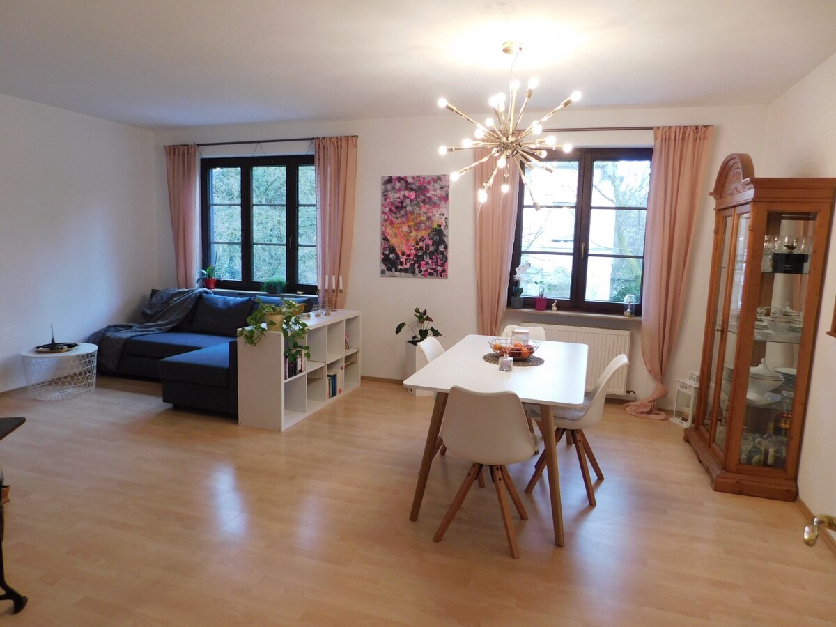Que vous veniez à Bad Kreuznach pour le travail ou que vous passiez des vacances dans la région, vous êtes au bon endroit. Moderne et récemment équipé, votre logement est situé dans le vieux centre de Hargesheim, où la circulation est limitée. L'appartement est idéal comme point de départ pour explorer la région Rhin-Main, le Soonwald et le Hunsrück. Les vins de la région sont excellents, les nombreux sentiers de randonnée primés sont de véritables conseils d'initiés.