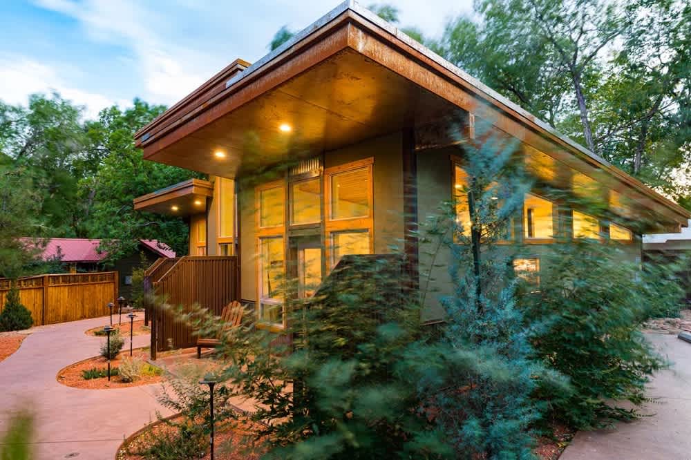 Nos bungalows de luxe sont à quelques pas du magnifique parc national de Zion. Les bungalows de Zion vous permettront de vous détendre après une journée de randonnée, de vélo et d'exploration tout en profitant de la nouvelle construction moderne et chic et du confort de la maison. Profitez du sanctuaire heureux et paisible de Zion avec nos vues à couper le souffle. Nous sommes situés à 1,8 miles de l'entrée du parc national de Zion et à 2 minutes à pied de l'arrêt de navette. Chaque bungalow de luxe porte le nom d'une plante indigène.