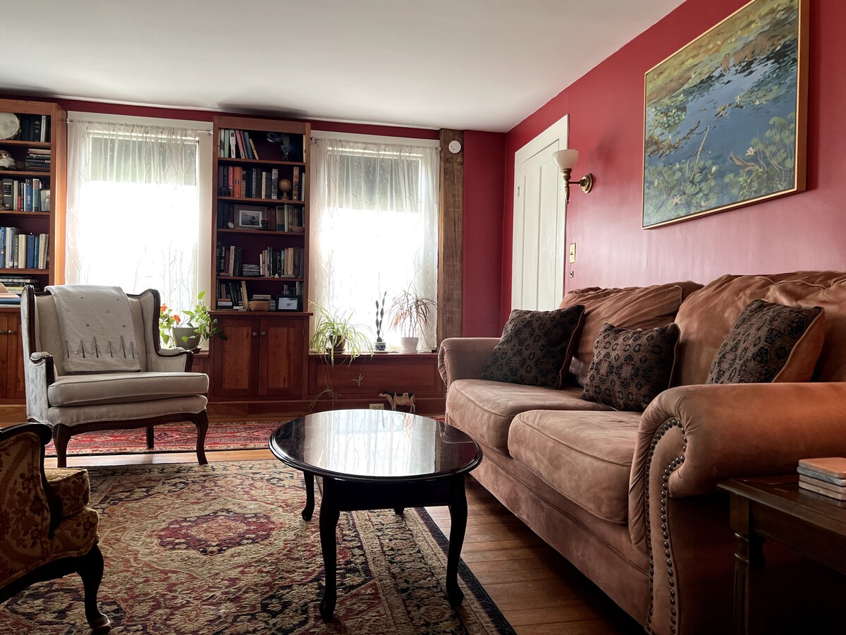Appartement privé au premier étage d'une maison historique de 1849 au cœur de Middletown, Connecticut. À un pâté de maisons à pied de l'université Wesleyan avec parking privé. La rue principale est également à un pâté de maisons avec de nombreux excellents restaurants, et notre meilleur café local (Klekolo) à quelques pas de votre appartement. La maison est en face de la bibliothèque publique. Patio en pierre dans une belle cour arrière clôturée.