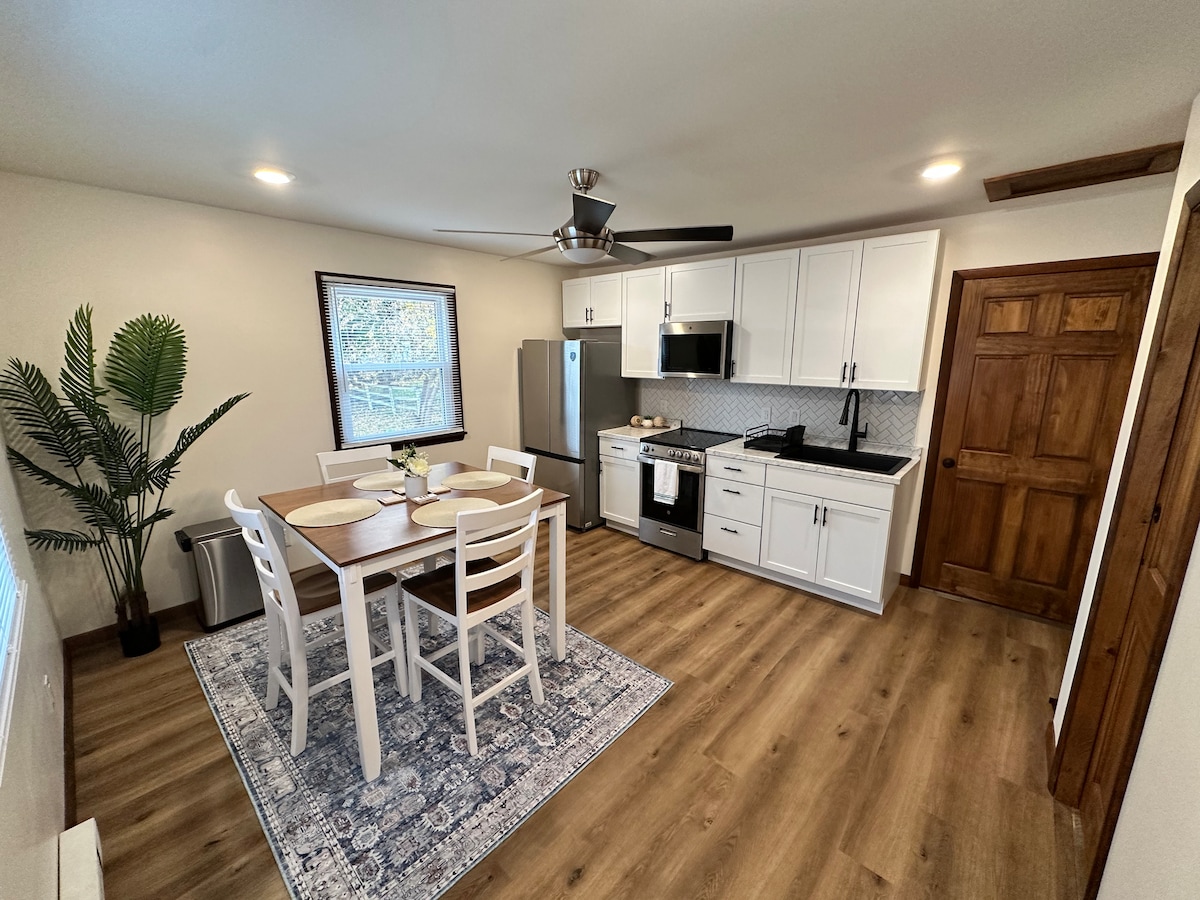 Profitez d'être à distance de marche de St. Lawrence University et de la rue principale. L'appartement dispose d'une cuisine entièrement équipée et d'une chambre et d'un salon confortables avec vue sur la terrasse et la cour arrière où un barbecue est disponible. L'entrée depuis la terrasse est privée et séparée de la maison principale où je vis avec deux chiens calmes dans une rue conviviale. L'appartement est à 20 m à pied/5 m en voiture de SUNY Canton et à 15 m en voiture de Potsdam. Il y a également des sentiers et deux terrains de golf à proximité.