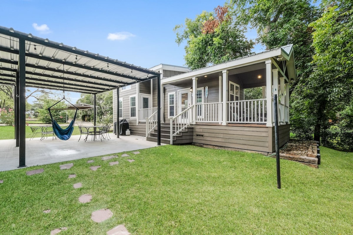 Évadez-vous dans cette cabane acceptant les animaux de compagnie, située directement sur la rivière. Dégustez votre café ou votre verre de vin sur la terrasse clôturée, jouez au jeu de fer à cheval, asseyez-vous autour du foyer ou plongez dans la baignoire à pied vintage. La rivière San Marcos n'est qu'à quelques pas de là, parfaite pour faire du tubing, du kayak et de la pêche. Tout ce dont vous avez besoin pour vous détendre et vous ressourcer.